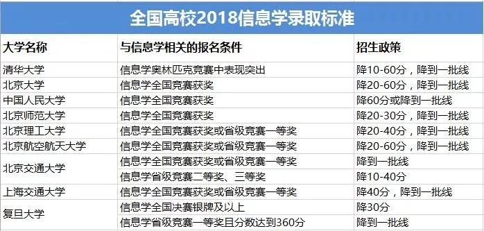 每年,北大清华和其他985高校都会录取一批信息学特长生,或者降分,或者降至一本线。有着清华北大的光环,也就不难理解为什么很多高中对信息学特长生青睐有加了。