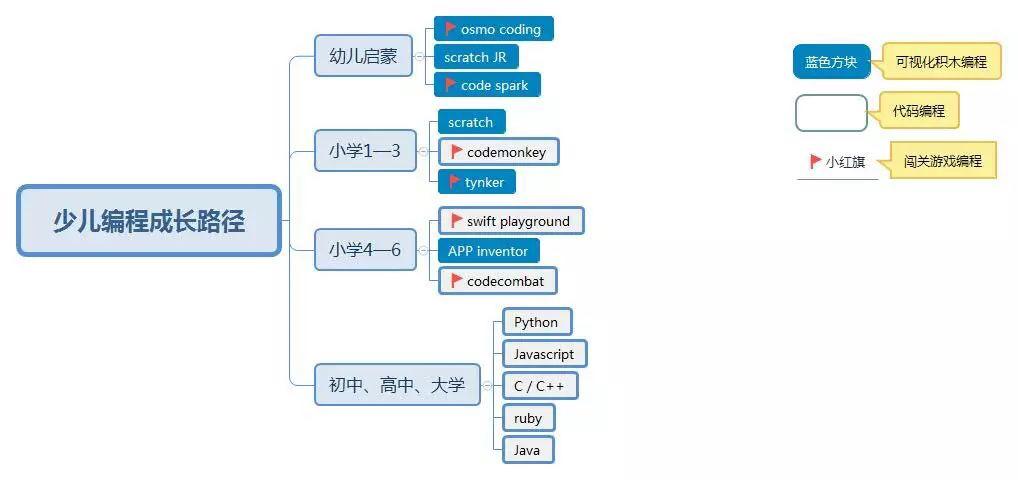 下面这张图为大家总结了少儿编程学习的成长路径: