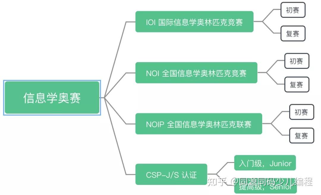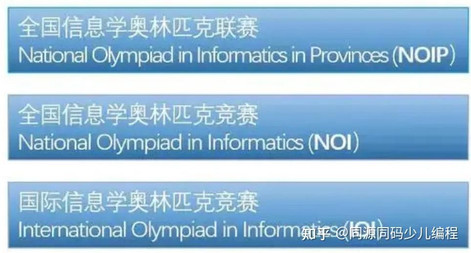 信息学奥赛由中国计算机学会主办,主要考察信息学,即编程的相关知识和能力,主要包括三级赛事: