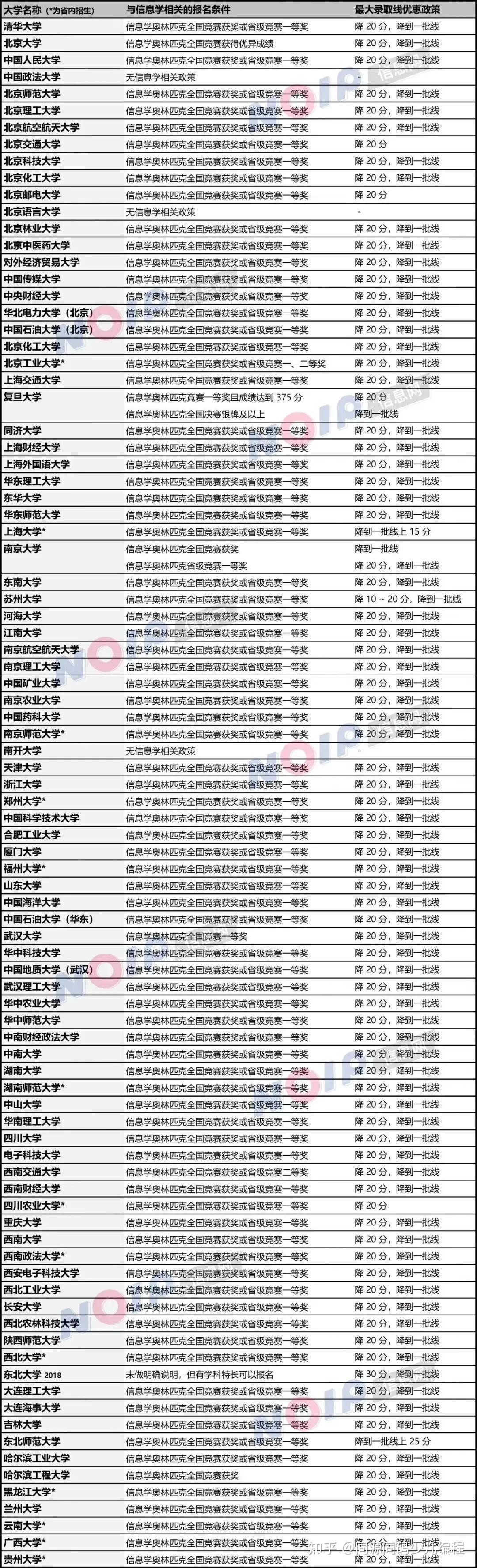 与信息学奥赛录取有关的大学名单如下: