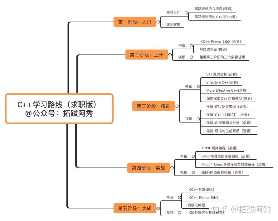 添加图片注释,不超过 140 字(可选)郑重声明:知乎上有关C/C++、编程、算法、学习路线类的相关回答以及文章均为阿秀原创,如欲转载请按照知乎规则进行转载。如果未经同意直接抄袭,我定拿起法律武器进行维权!先说明一句,这篇C++学习路线主要是面向求职的同学,认真走完前三阶段绝对能帮助你找到一个不错的工作了。