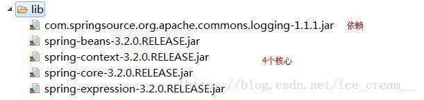 4 + 1 : 4个核心(beans、core、context、expression) + 1个依赖(commons-loggins…jar)