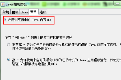 3、然后我们选择“配置java”,在安全选项中把“启用浏览器中的java”勾选上。