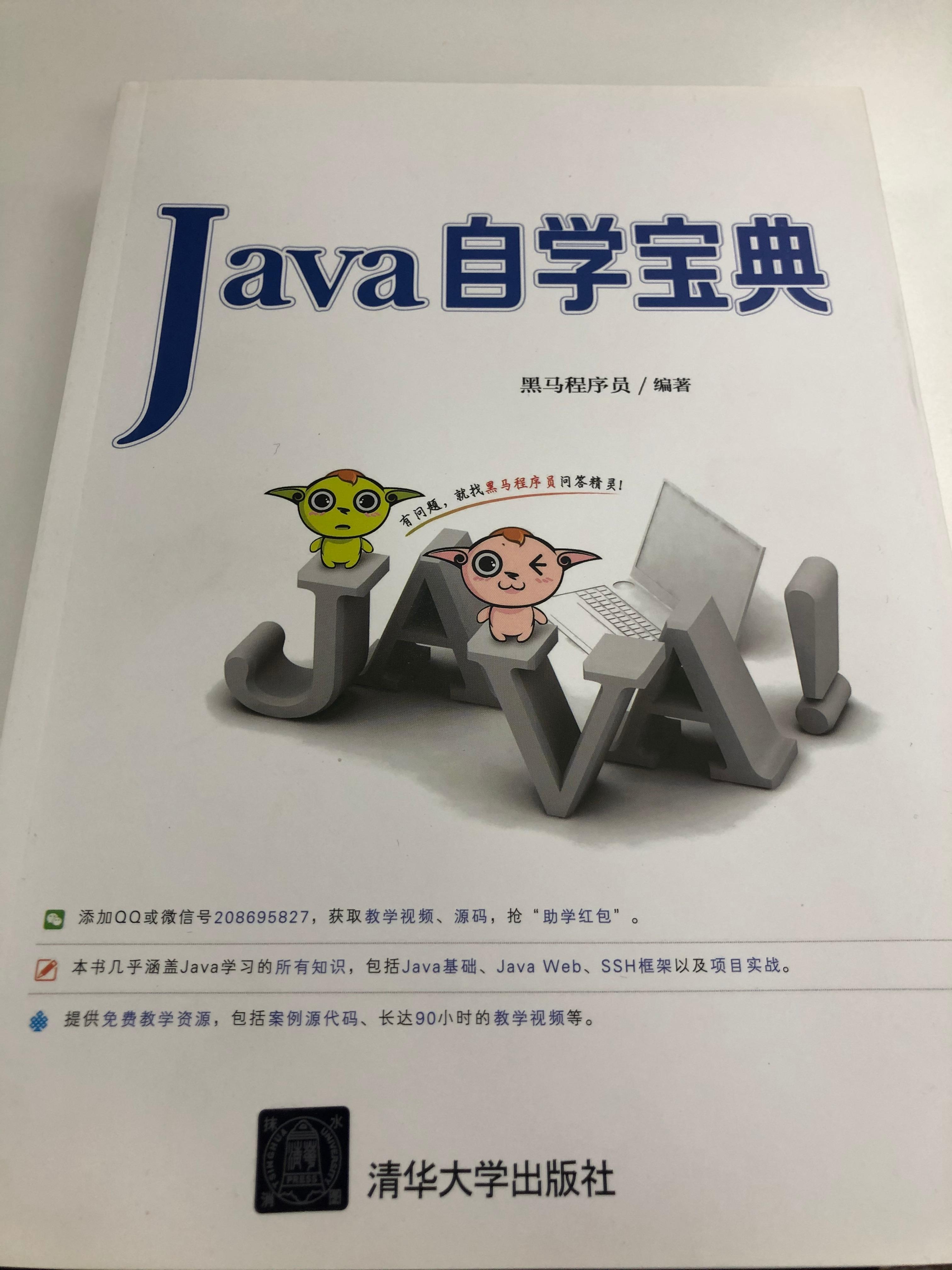 很幸运,刚开始自学的时候听学长的推荐看黑马程序员的教程。我就是跟着教程一步步的走,因为自己比较喜欢看书,也有耐心看书,就自己买了一本Java入门书籍,我自学过程中是以教程为主,书籍为辅助的。毕向东老师的Java教程对于自己的编程思维有很大的帮助,对于刚接触编程的人来说,编程思维的锻炼尤其重要。
