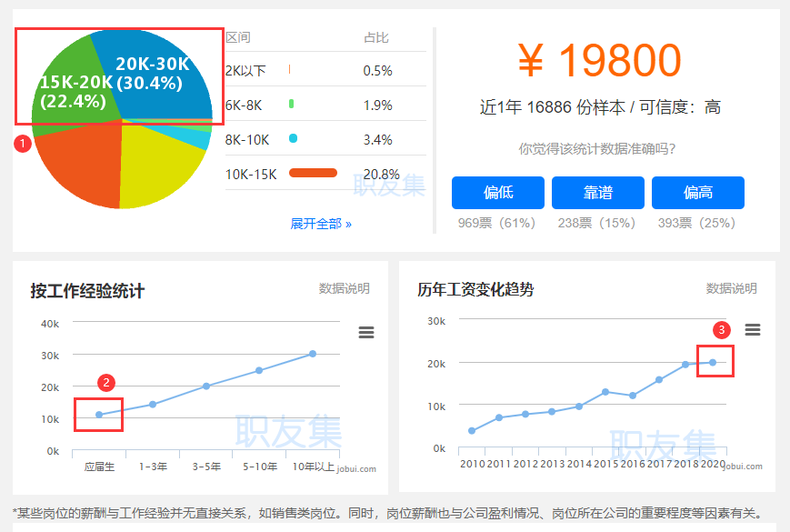 下图为2020年北京地区的Java开发工程师薪资,关注下我标出来的三个重点: