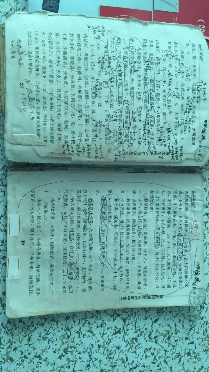 这本书是在在东汉末年张仲景所著。这本《伤寒论》可以说是奠定了中医理、法、方、药的基础,为中医“辨证论治”提供了一种中医治疗的思考方式。整体阐述了一个人得了某一种疾病的传变规律。我们知道人冬天感受了寒冷会感冒、然后发烧,我们去打针就没事了。但是往往不是这样,如果发烧了打针好不了,就会传到胃,导致大便干硬,高热不退,满口说胡话……,如果高热不退还治不好,传到胆,那么就会浑身打颤,一时冷一时热。这时候你就会问我为什么传到胆,人体会一时冷一时热?这个中医没有办法给你解释,不论现在中医学、西医学怎么给你解释,都不一定是对的,我们从小受到太多的逻辑学的学习,总想问为什么。但是任何一个科学给你讲了一个问什么,只是我们人脑认为他是对的,然后方便我们记忆而已。当时在大学背书真的很认真,有这本书为证!已经背到发黄了!而且全部都是古文!
