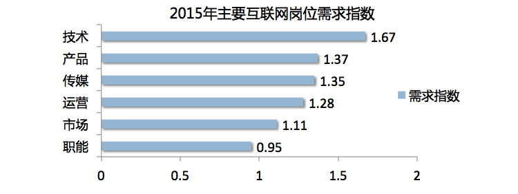 我们采访了招聘类网站 Boss 直聘的员工罗霄。 根据她提供的数据,尽管 “ 行行转码农 ” ,但事实上技术人人才的招聘缺口仍然很大。根据 Boss 直聘的数据,2015 年主要互联网岗位需求指数中,技术仍然占据第 1 位,指数高达 1.67。(高于 1 的都存在人才缺口)