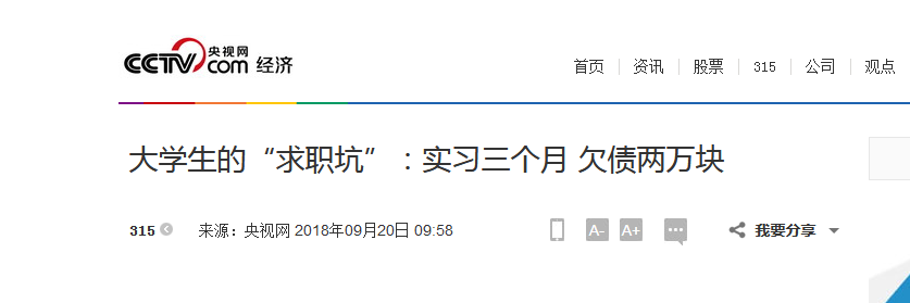 文章和视频请戳:大学生的“求职坑”:实习三个月 欠债两万块