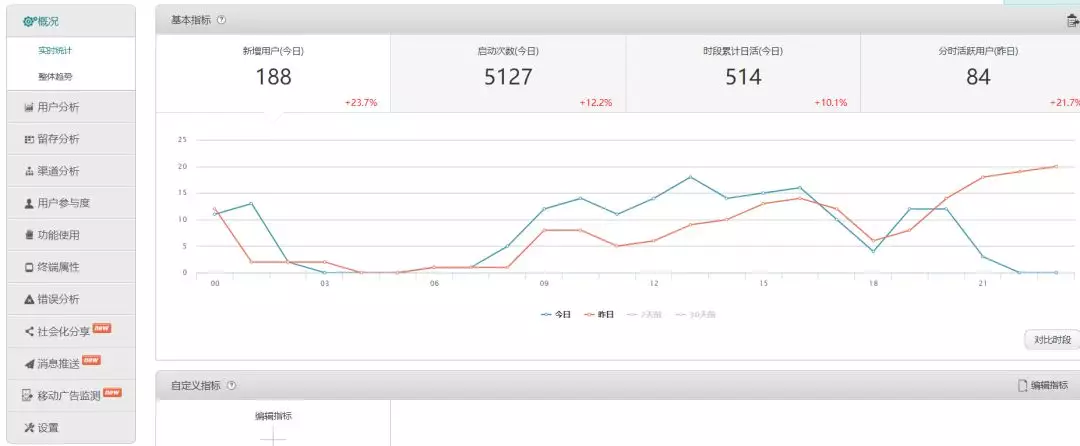 友盟跟前两者的区别在于,友盟是专注于做app统计的(网站统计也涉及),目前在app上应用比较广泛,其功能和百度的移动统计版本类似,基本上懂一个就能够复用。