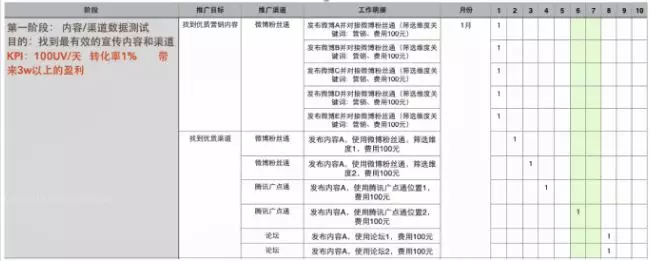 比如说,1月份的目标是净增粉10000,那么这个目标分解下来可能是: