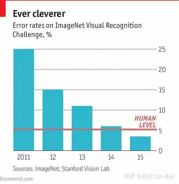 在随后的研讨会上,获胜者分享和讨论他们的技术。2010 年,获胜的那个系统标记图像的准确率为 72%(人类平均为 95%)。2012 年,多伦多大学教授杰夫 · 辛顿(Geoff Hinton)领导的一支团队凭借一项名为 “深度学习” 的新技术大幅提高了准确率,达到 85%。后来在 2015 年的 ImageNet Challenge 竞赛中,这项技术使准确率进一步提升至 96%,首次超越人类。
