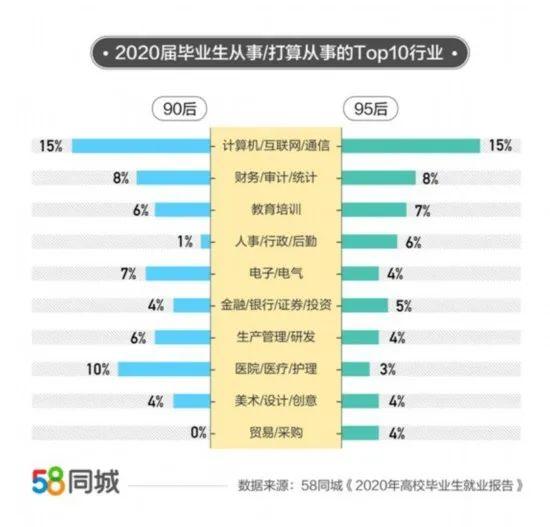 从调查显示看,不管是90后还是95后,计算机/互联网/通信行业都是首选。