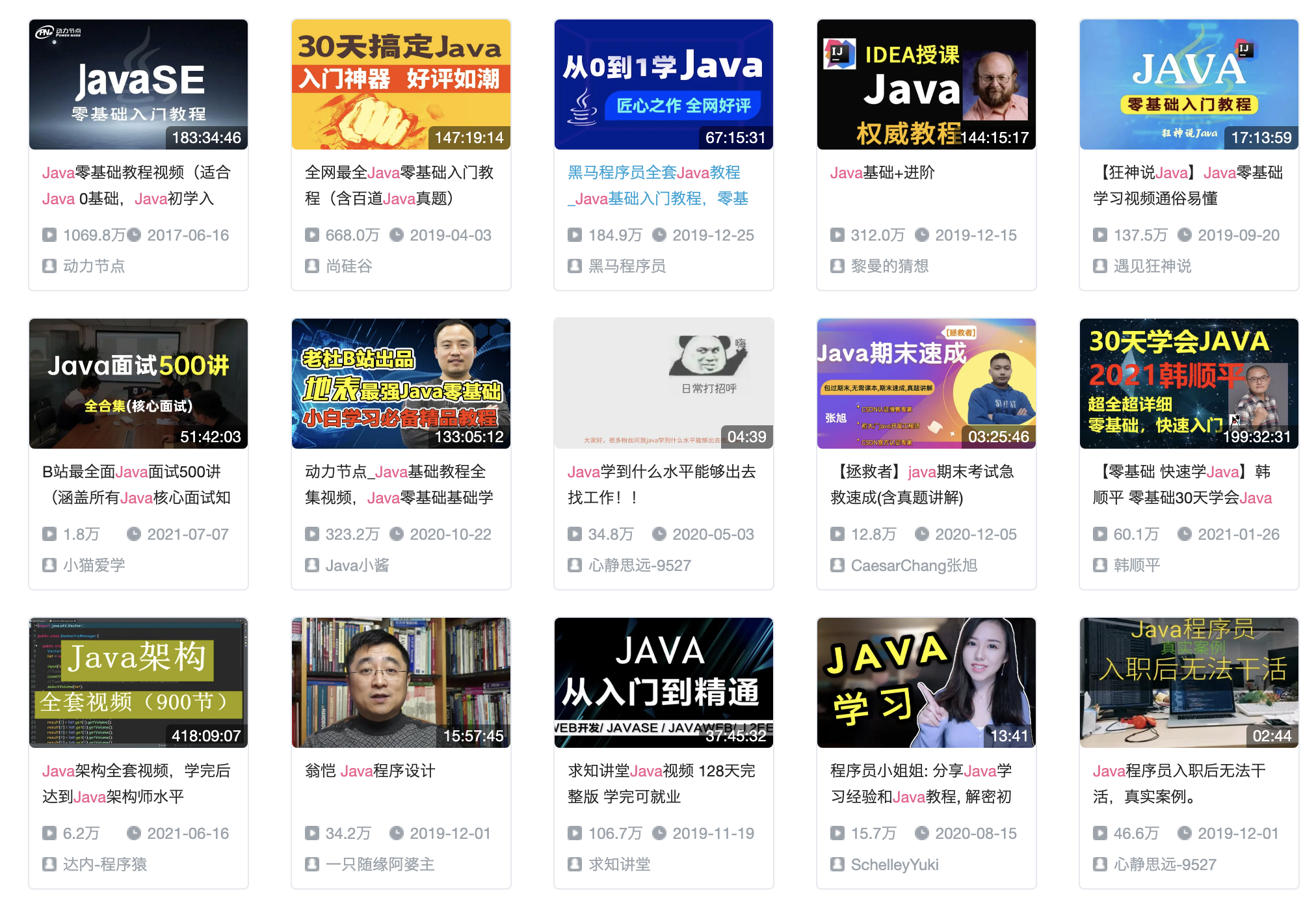 或者直接去 B 站上搜“Java”关键字,选择项有很多,挑选适合自己的教学风格的视频就可以了。