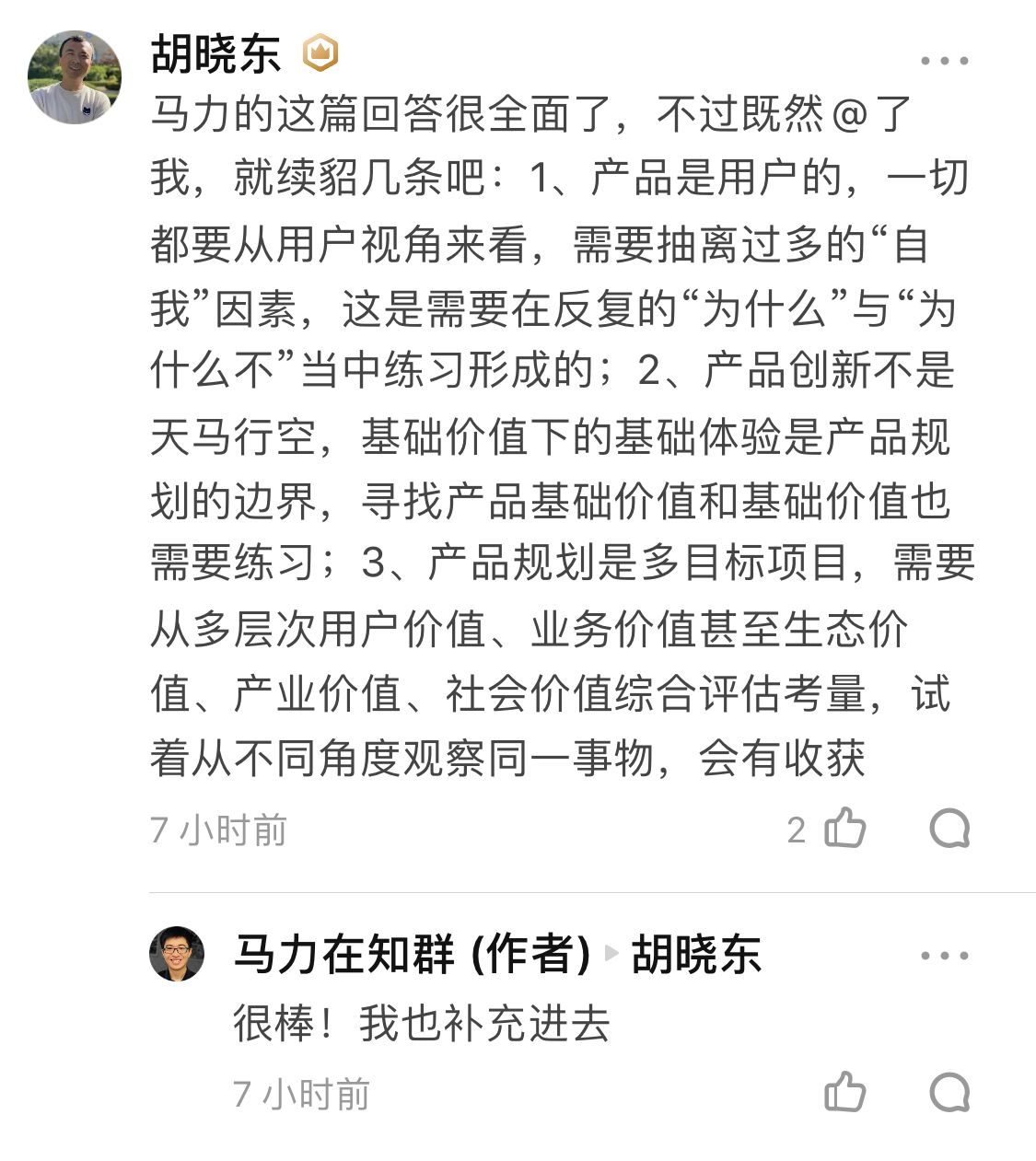 这里面胡老师的补充非常好(胡老师是阿里P10的产品经理),也补充进来: