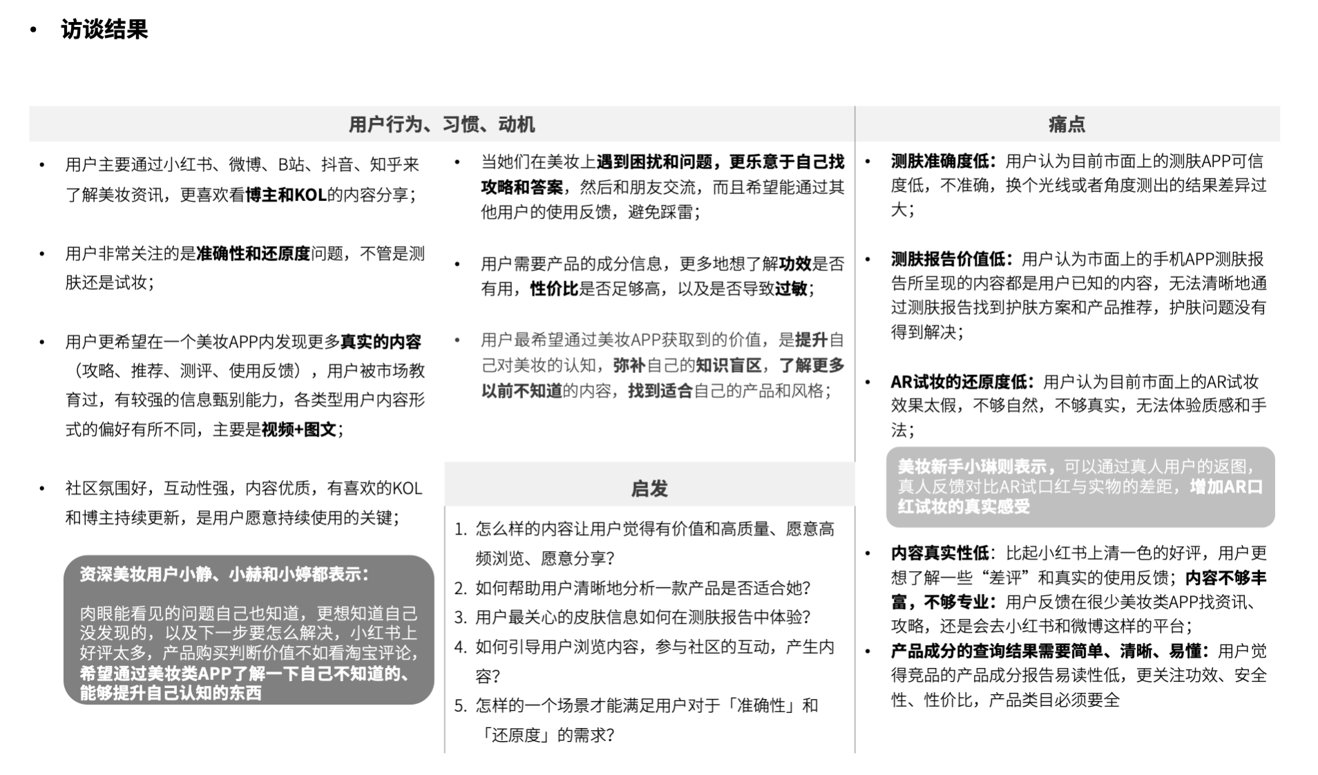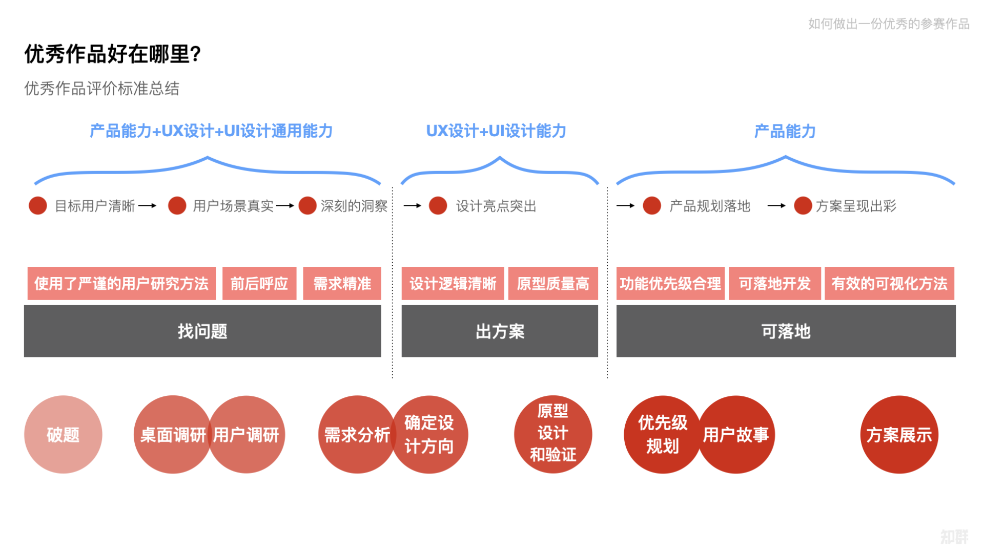 我们在前面用到的是类似文科式的问法,最后却回归到了理工科的总结;从前面定性的问法到后面需要有逻辑有条理的回答。不能前面空口吹嘘,而回答后面的问题时却收不回来,其中所反映出的问题就归结到了思维方式的问题上,回答问题的方法本身就是产品思维的一种体现。