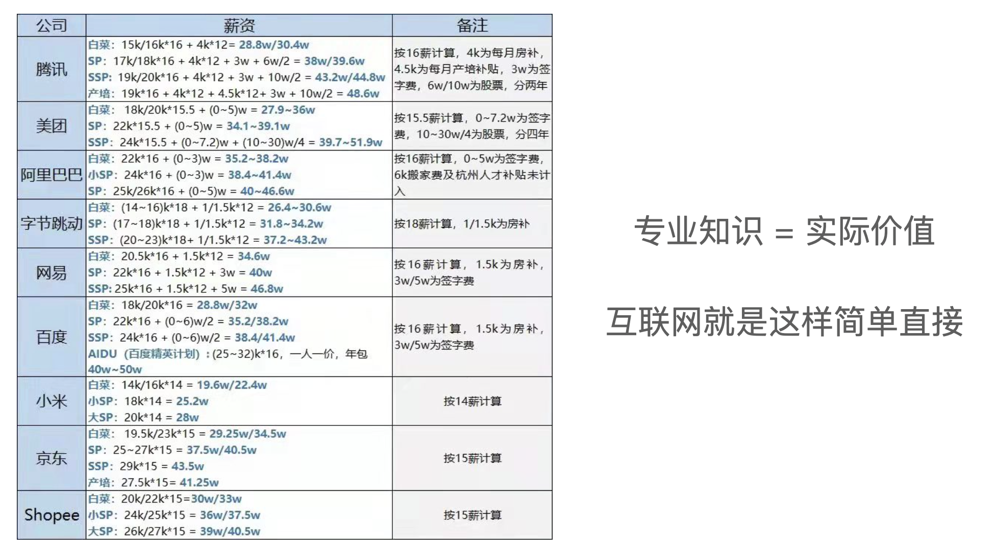如果是在很多传统行业,可能要很多年才能到这个薪资水平,但是互联网行业里的大公司很容易就可以给到。而且不要认为只有名校生才有机会,名校只是一个敲门砖,每年有很多双非院校的学生一样获得了机会。