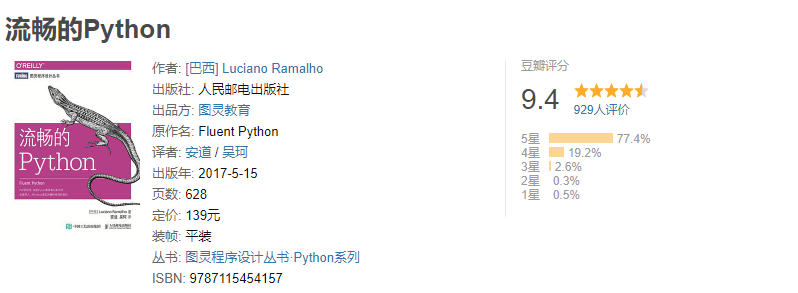 本书内容覆盖了数据结构、对象,并行和并发,元编程等多个方面。而且不是常规的给你介绍,而是完全的应用实例。适合进阶的同学,每张后面都有阅读材料,含括了Python语言的设计理念等。