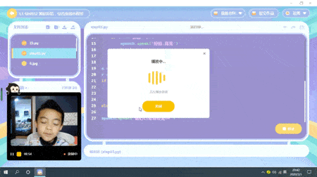 低年级的季漫妮同学学习猿编程后,在课堂上运用编程编写程序,进行唐诗朗诵解说。
