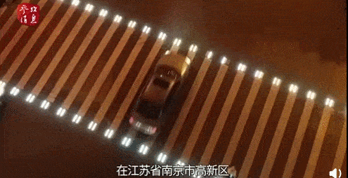 南京江北新区的“会发光的斑马线”——只要有人站在斑马线等候,两侧的灯带就会闪烁白色的灯光。