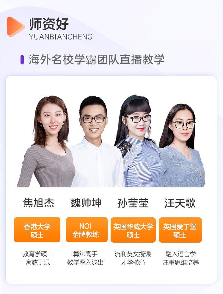 系列课程由猿辅导副总裁李翊亲自担纲总设计师,课程讲师全部由有着丰富编程及儿童教育经验的名师担任。