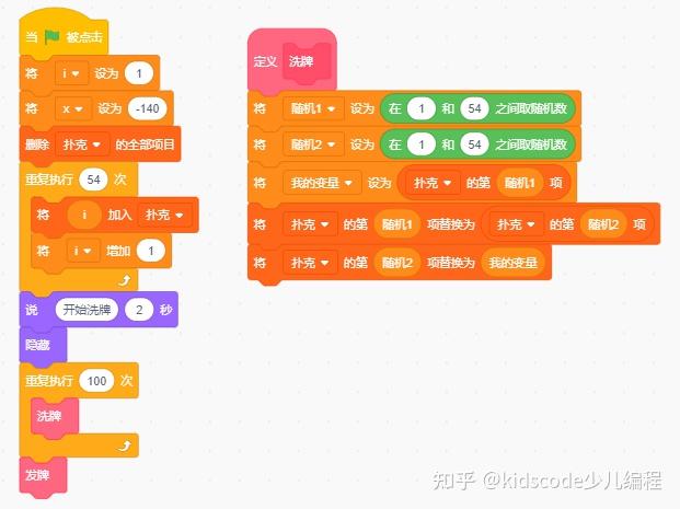 纸牌角色的54个造型不是随便排列的,我们是同一花色按照A、2、3、4……10、J、Q、K这样的有序排列的,造型的ID从1-54代表54张牌。把这54个数存入列表,通过打乱这个列表,实现对牌面的打乱。打乱列表顺序的方法比较多,举个例子可以随机生成两个数(1-54之间)让这两项值互换,重复多次执行即可打乱顺序。