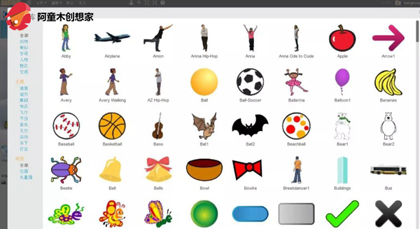 背景图库中的分类角色,有奇幻、动物、人物、物品、交通等,对小孩还是很有吸引力的。