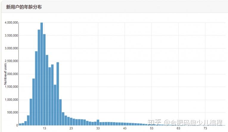 Scratch的用户最小的年龄为4岁,主要集中在6-17岁这个阶段。
