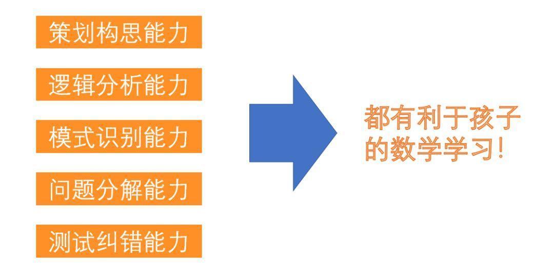 编程的过程就是解决一个个数学问题的过程,编程对孩子数学能力的强化是毋庸置疑的。
