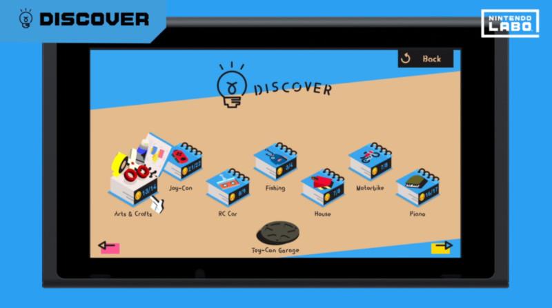 Nintendo Labo 里包含了一系列各种不同的手工DIY纸模套件,除了纸模所需的各种零件外,还含有一个 Switch 游戏机的配套软件。组装完成后的纸模可与 Switch 的 Joy-Con 手柄以及本体装配在一起,组合成名为 Toy-Con 的玩具套件,再配合相应软件进行体感互动游戏。