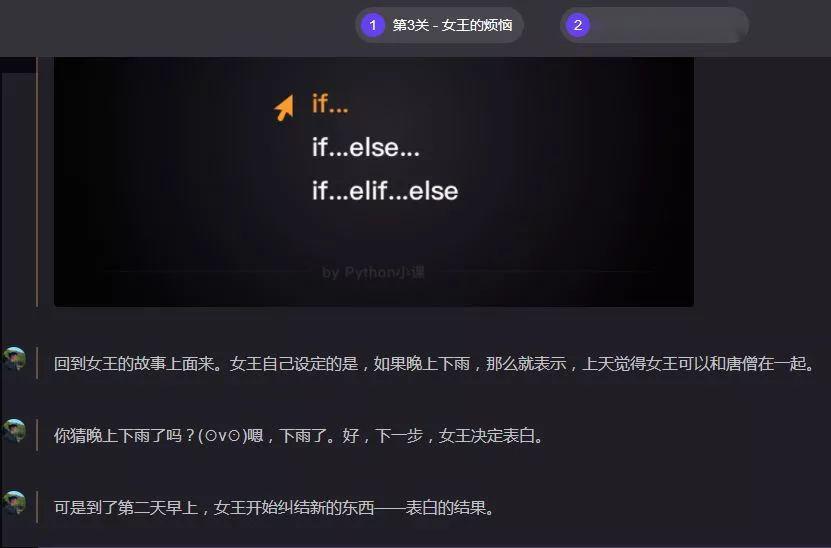 「Python小课」致力于消除编程专属于程序员的错误认知,区别于传统的编程學习,不用看书,不用看视频;「Python小课」采用了交互式设计,穿插趣味横生的场景,让你越學越上瘾。