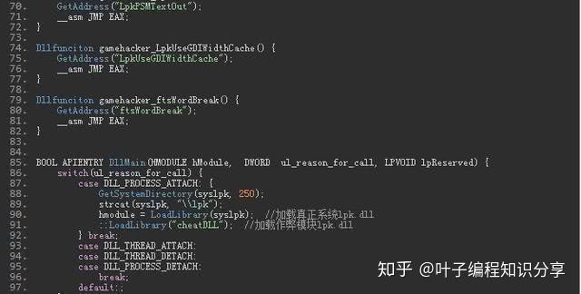 通过C语言编写一个游戏要加载的系统DLL文件(lpk.dll),其中假DLL包含劫持功能和作弊功能且拥有相同的导出函数,将该假DLL放入游戏相同目录下,游戏打开时会自动加载该假DLL,使游戏直接包含作弊功能。