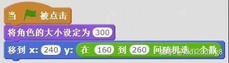 障碍物最初处在舞台最右边,所以X坐标为240,Y坐标为一定范围内的随机值(160~260)。