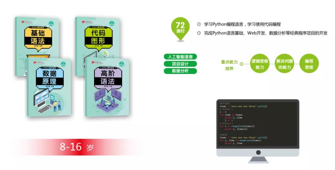 凤凰机器人的Python课程从基础语法到实际运用,循序渐进,浅显易懂,实用而有趣,能够培养孩子运用编程解决实际问题的能力。同时,通过Python语言的学习,孩子能够更好地理解大数据、人工智能等前沿技术的底层实现原理,为今后在这些领域的学习和研究打下坚实的基础。