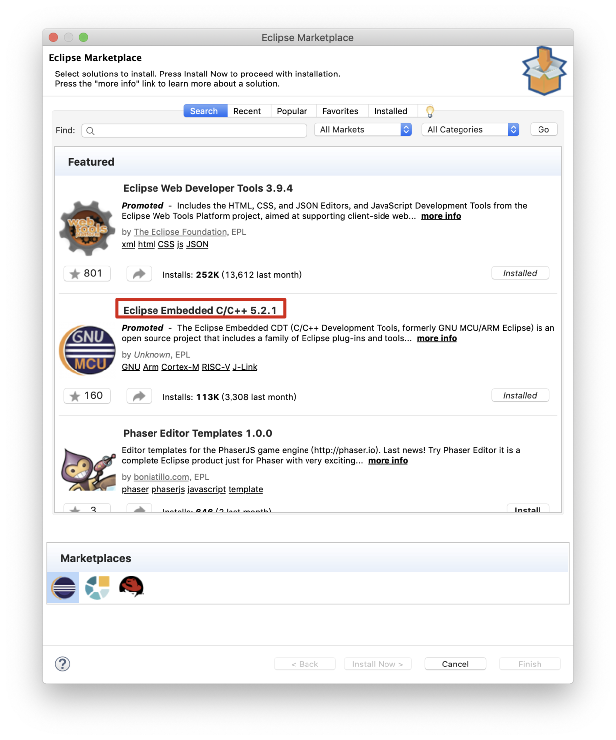 如果你是第一次使用 Eclipse 的话,可以在 Eclipse 官网直接下载 C/C++ Developers 版本;如果你的电脑上已经安装好了 Eclipse,可以在插件市场安装 C/C++ 的插件,如下图所示。