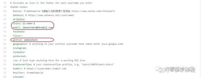 这里配置社交链接按钮,没配的不显示,我现在配了知乎、邮箱、github账号三个。其他你想加自己加上就可以。