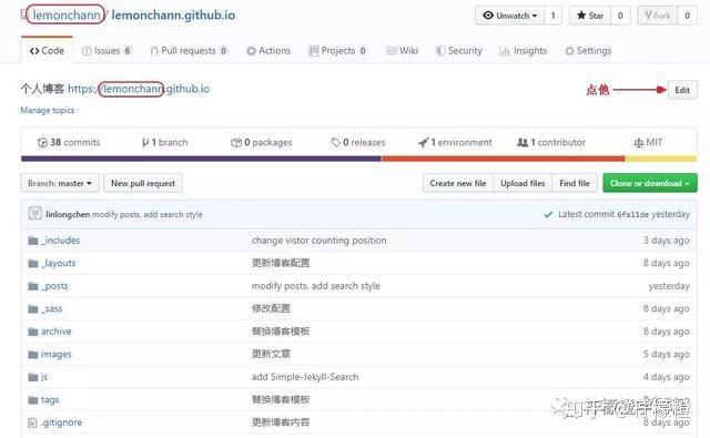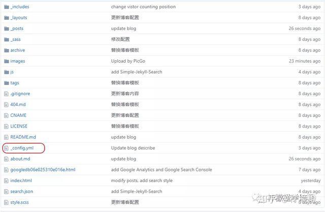 博客的配置文件是仓库根目录下的_config.yml文件,直接点开它编辑。