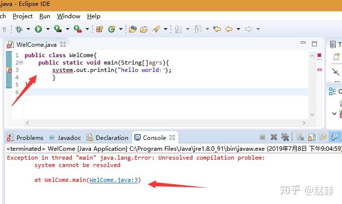 eclipse会自动执行javac进行编译,并且会将编译错误直接给出提示,一目了然,非常便于我们调试。记事本等类似的编辑环境,我们只能手动执行编译。