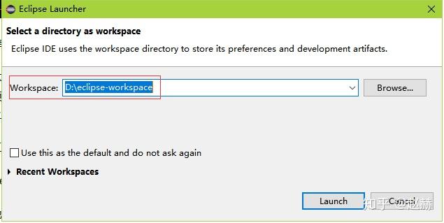 运行eclipse主程序后,会让选择Workspace的目录,Workspace就是源代码、工程文件等文件的存储空间、根据自己需求选择合适的文件夹即可。