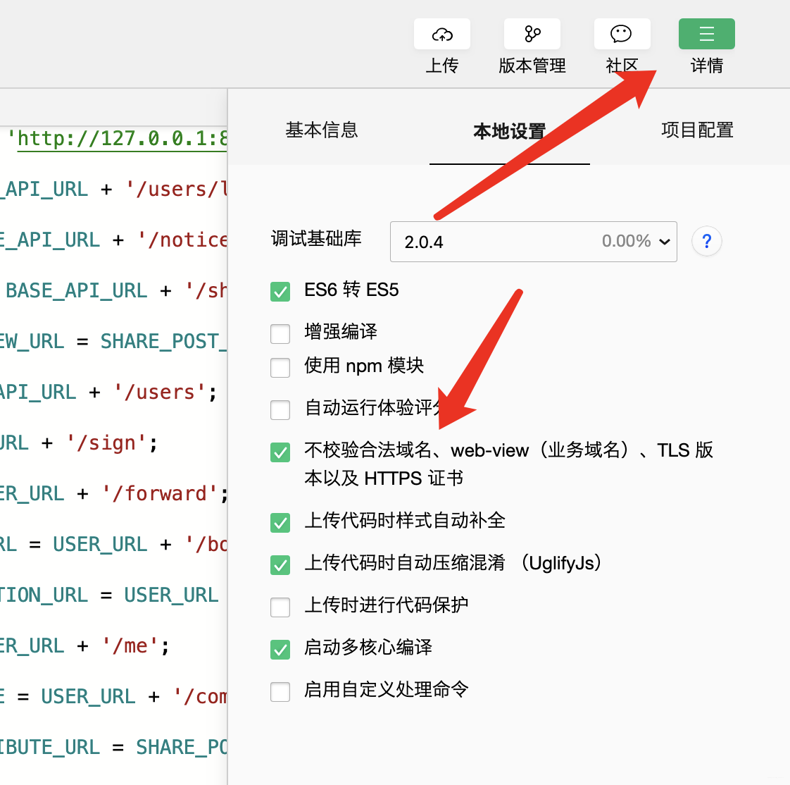注意:务必勾选 不校验合法域名... 。