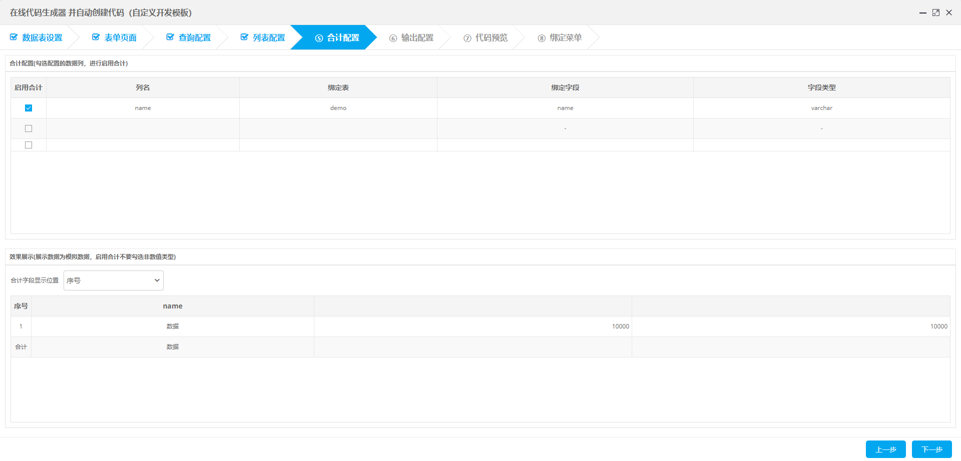 点击模板后进入设计页面,根据向导进行配置,完成后点击下一步即可