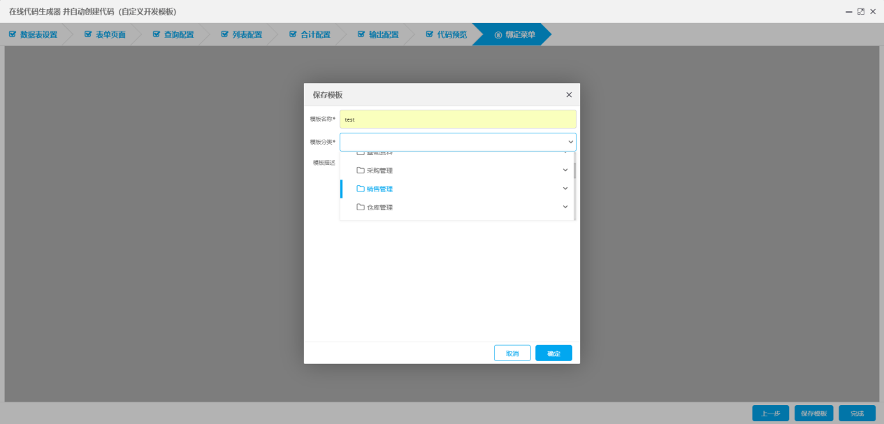 进入代码生成器,便进入开发模板,最初共设计了多个模板,后来参考客户意见,优化成统一的自定义开发模板。