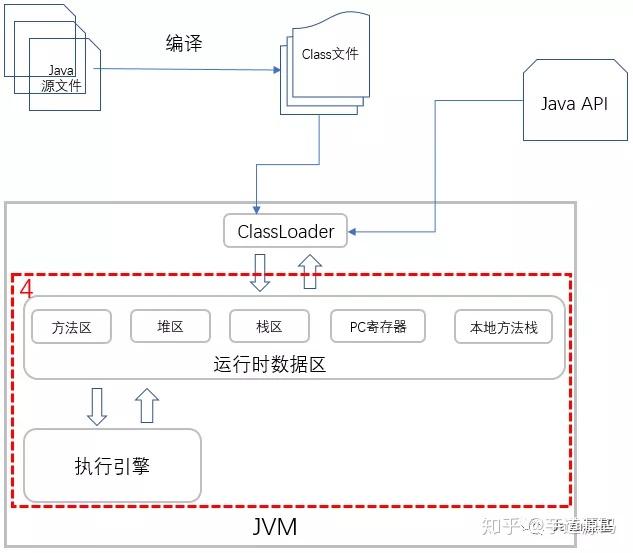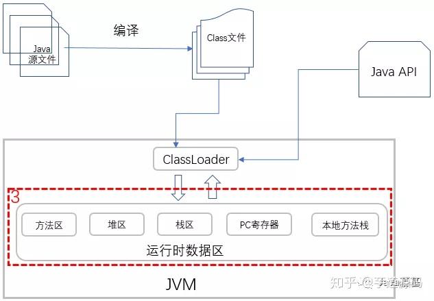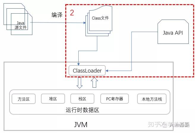 JVM首先通过类加载器(ClassLoader),将class文件和相关Java API加载装入JVM,以供JVM后续处理。