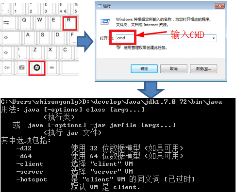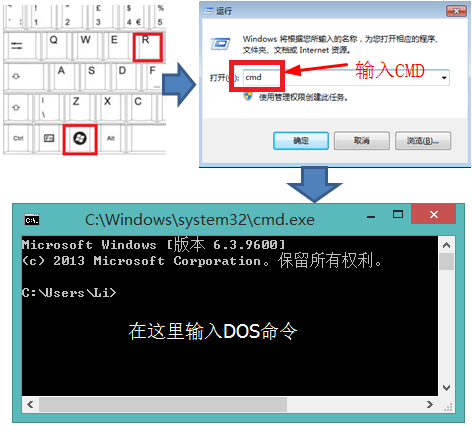 DOS命令是在DOS控制台中使用的命令,弹出DOS控制台的方法是:win+R,然后输出cmd,是不是看起来有点熟悉,没错,就是校验JDK安装是否成功是弹出的小黑屏。