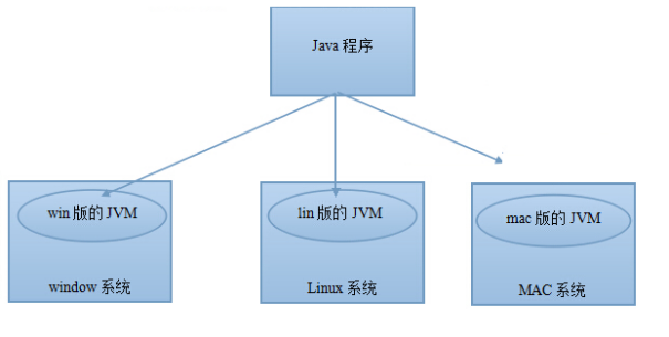 原理:只要在需要运行 java 应用程序的操作系统上,先安装一个Java虚拟机 (JVM Java Virtual Machine) 即可。由JVM来负责Java程序在该系统中的运行。