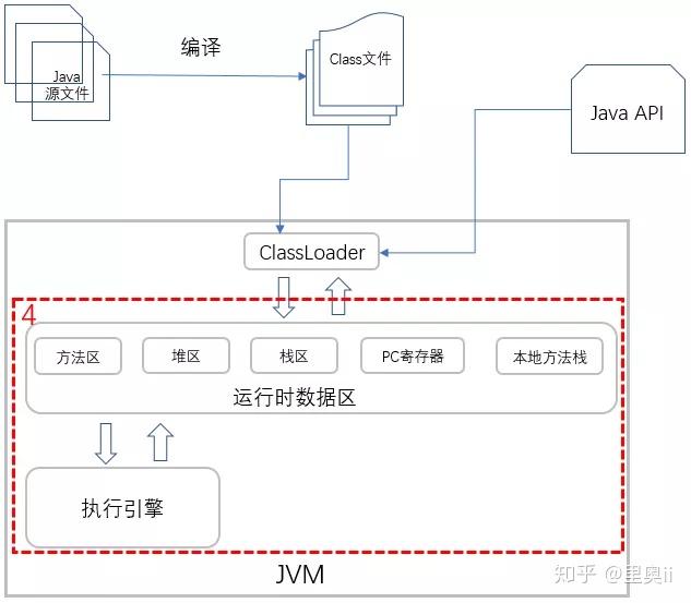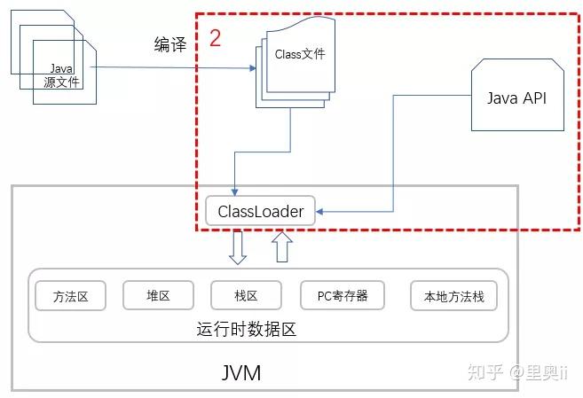 JVM首先通过类加载器(ClassLoader),将class文件和相关Java API加载装入JVM,以供JVM后续处理。