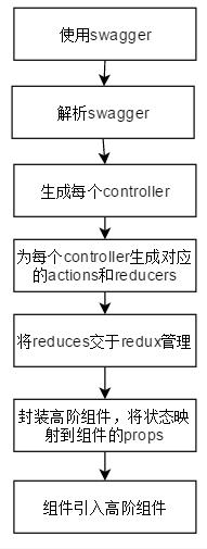 首先先了解一下前端管理后台接口的架构设计流程,技术选型后端要使用Swagger接口管理,前端React使用Redux状态管理,React-redux状态映射组件Props,Redux-thunk支持异步管理状态,解析Swagger需要用到Handlebars模板编译和fs文件解析。