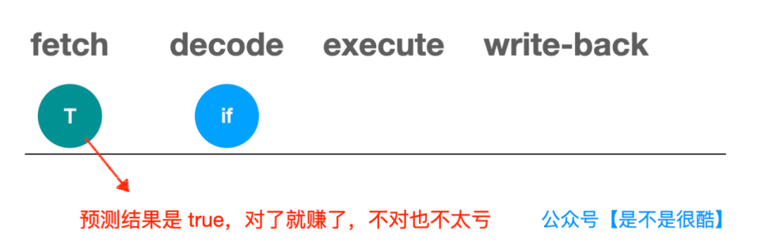 简单来说,分支预测就是针对这种 if 指令,不等它执行完毕,先预测一下执行的结果可能是 true 还是 false,然后将对应条件的指令放进流水线。