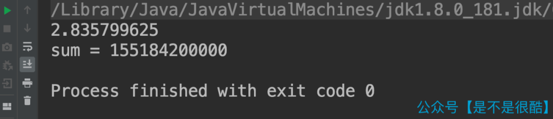 大家可以看到,由于测试数据是一样的,所以最终的 sum 结果是一样的。但是第二次,针对有序的数组做实验,消耗的时间仅仅是 2.8 秒左右,比无序的情况快了有 3 倍之多!
