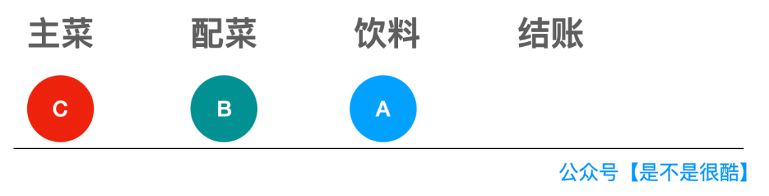 当 A 同学开始选择饮料的时候,B 同学已经可以选择配菜了,而 C 同学,此时就可以开始选择主菜了。▼