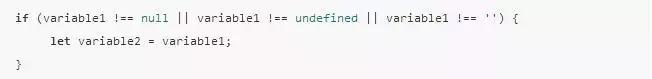 const big = x > 10 ? " greater 10" : x当给一个变量分配另一个值时,想确定源始值不是null,undefined或空值。可以写撰写一个多重条件的if语句。